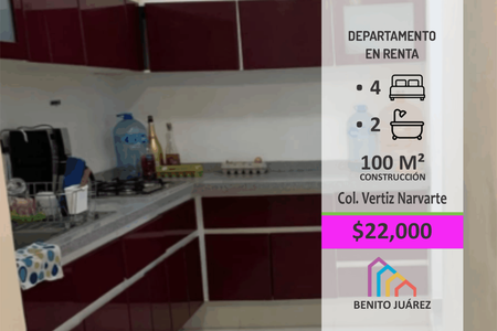 I rent a magnificent apartment in Petén, Vértiz Narvarte, Benito Juárez.