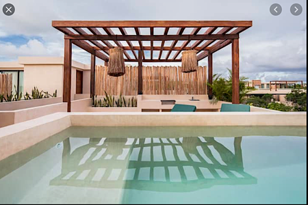 Yoga deck department, pergolas with pre-built lounge in Aldea Zama tu