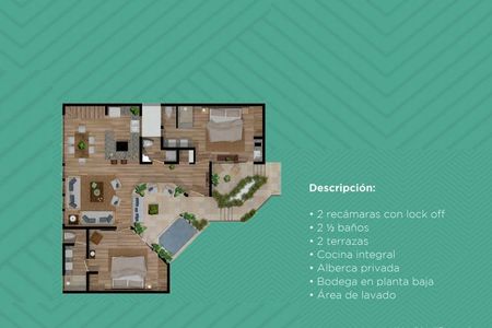 Apartment with private lock off pool, in Aldea Zama for sale.