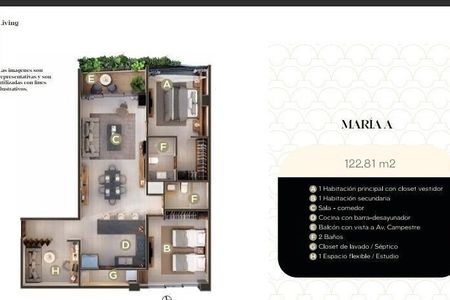 Apartment with 2 bedrooms and flex in Campestre, María Living