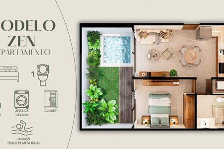 APARTMENT FOR SALE MERIDA, DZITYA, ZENNOVA, MOD 1 BEDROOM, IMMEDIATE DELIVERY.