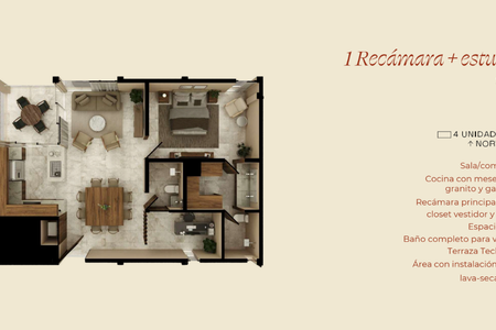 Apartment for Sale in Mérida, Época, Montes de Amé (Mod. 1+Flex plus)