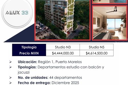 ALUX 33. SALE OF APARTMENTS PUERTO MORELOS QUINTANA ROO.