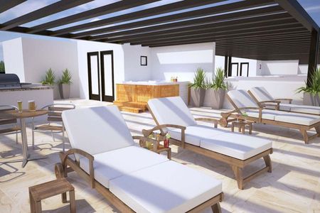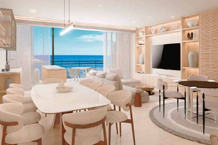 Condo with ocean view, spa, gym, infinity pool, grills, fire pits.