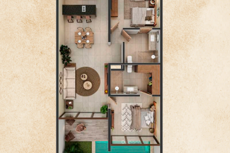Apartment for sale in Tulum, 2 floors, 3 bedrooms