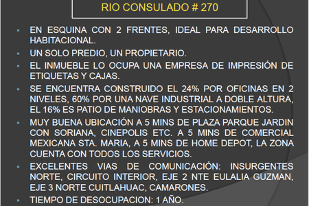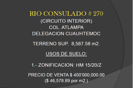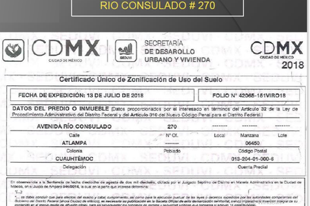 Land 1 block from Reforma. Land use / Commercial Residential.