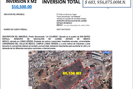 LOMAS VERDES, Naucalpan, Edo. Mex.! 7,000 M2