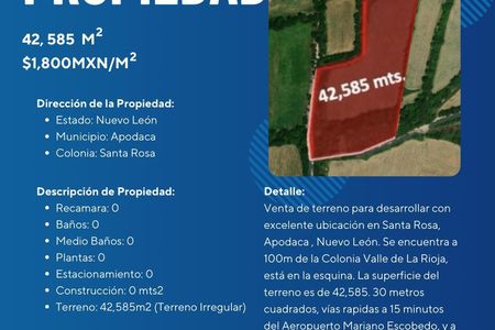 LAND FOR SALE, SANTA ROSA, APODACA NL 100 METERS FROM VALLE DE LA RIOJA
