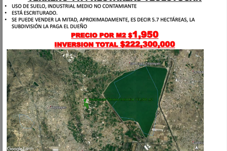 Sale of industrial land in Zumpango, State of Mexico