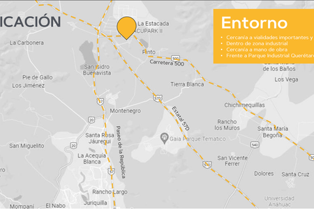 Industrial warehouse for rent near the Queretaro Industrial Park GPS