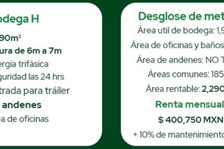 RENTAL OF INDUSTRIAL WAREHOUSE IN TLALNEPANTLA 2,290 M (H)