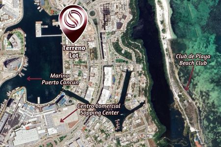 Land overlooking the Puerto Cancun lagoon, beach club, golf, for sale, Cancun