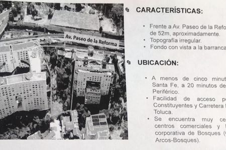 Flat land on Paseo de la Reforma, Lomas de Chapultepec.