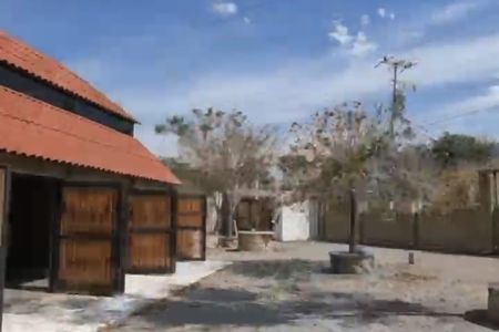 Fenced land with a small house