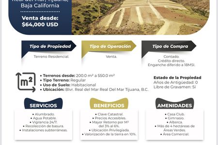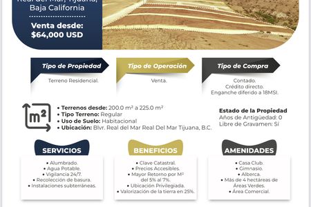 LAND FOR SALE IN REAL DEL MAR, SECC PARQUE REAL TIJUANA 500 USD X M2
