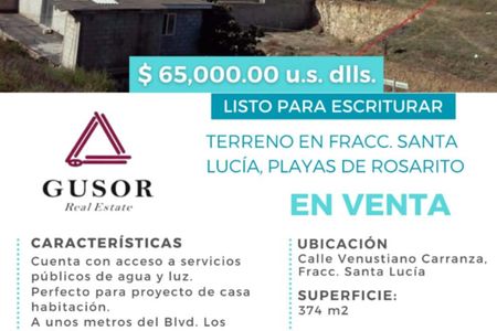 LAND FOR SALE IN ROSARITO | COL. SANTA LUCIA