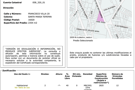 Land for sale in Santa María Tepepan, CDMX | 1,702 m² with H2/40 land use,