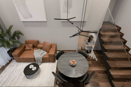 Área social integrada: Una estancia de sala y comedor fluida e iluminada, perfecta para relajarte o disfrutar de una cena tranquila en casa.