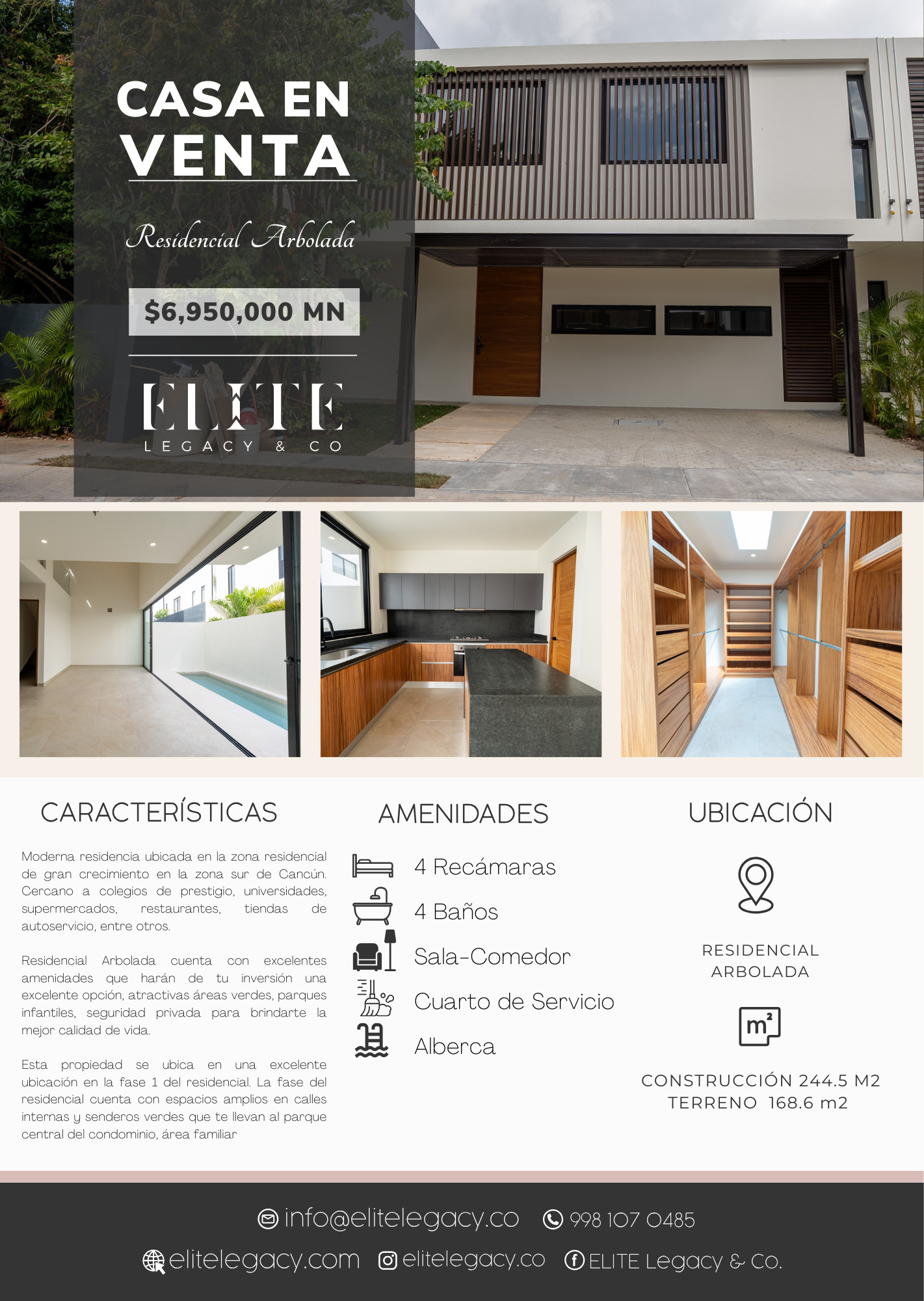 Moderna residencia ubicada en la zona residencial de gran crecimiento en la zona sur de Cancún. Cercano a colegios de prestigio, universidades, supermercados, restaurantes, tiendas de autoservicio, entre otros.