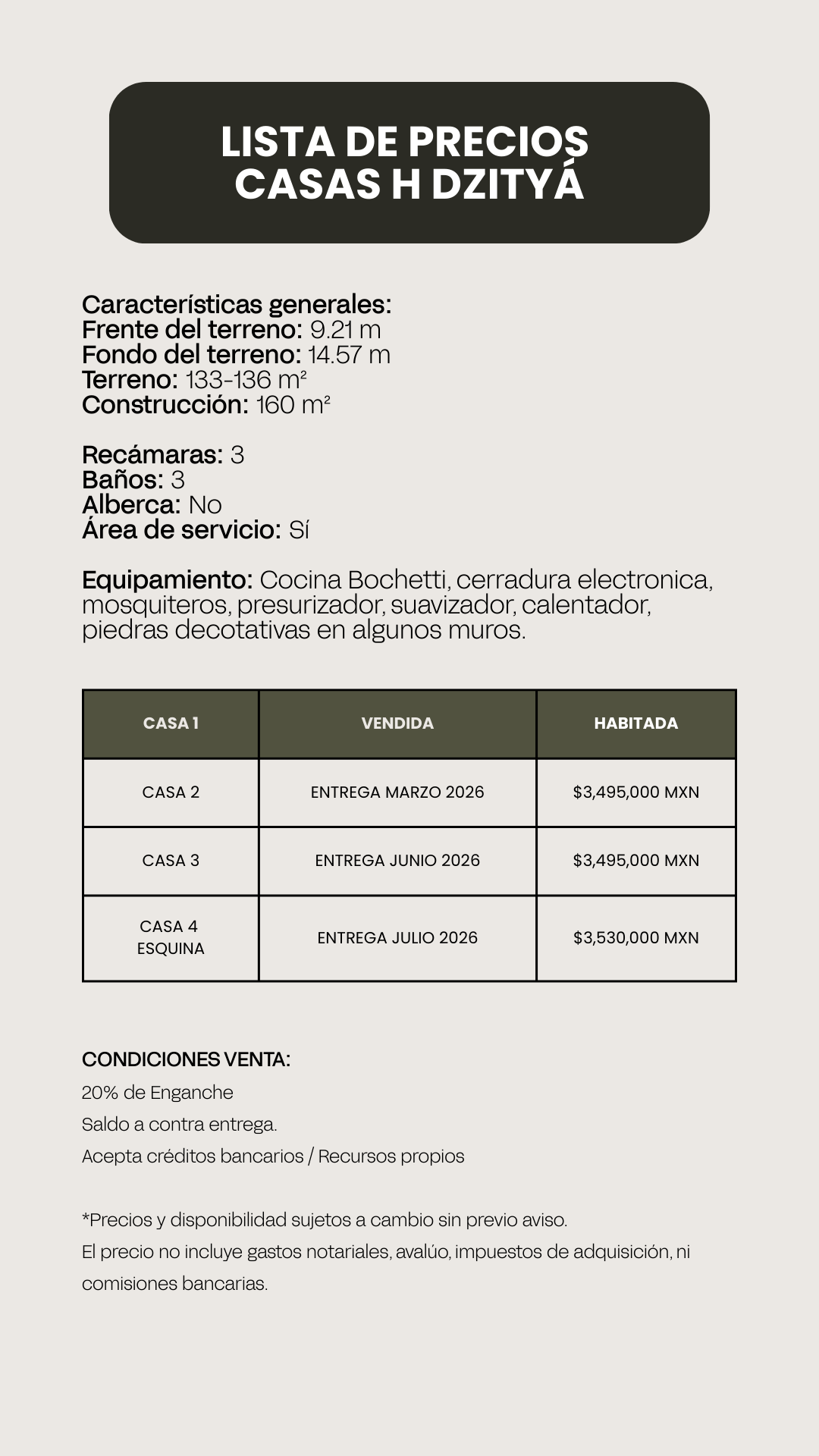 Dzityá, se ubica a escasos 4 kms del periferico norte de Mérida, y tiene colegios, plazas, servicios muy cerca, ademas acceso rápido a la zona country y las playas.