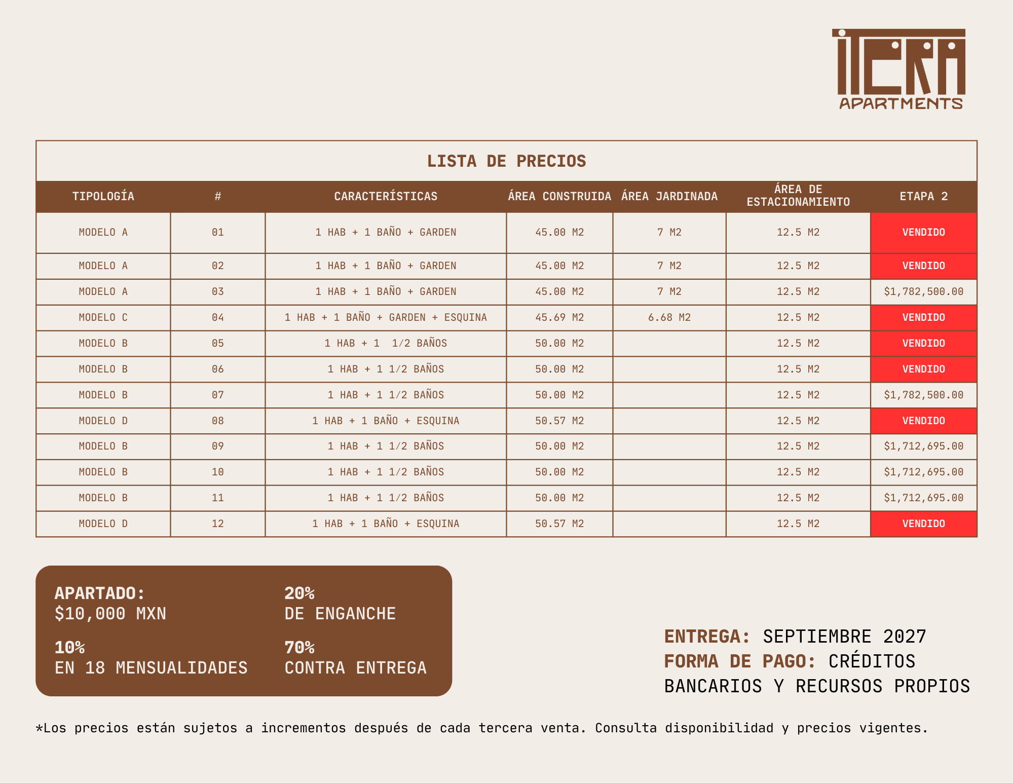 -El precio no incluye gastos notariales, avalúo, impuestos de adquisición, ni comisiones bancarias.