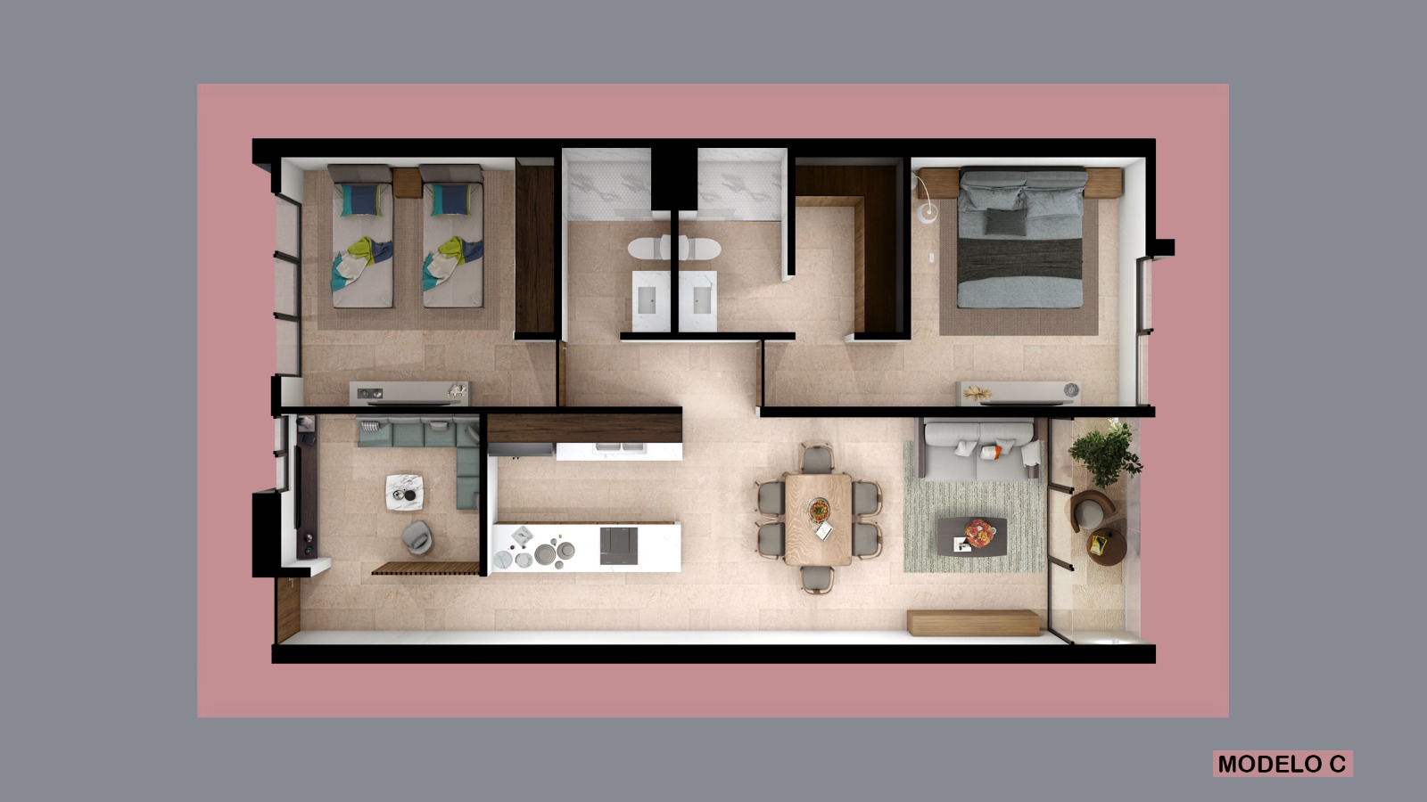 MODELO D – 2 Recámaras