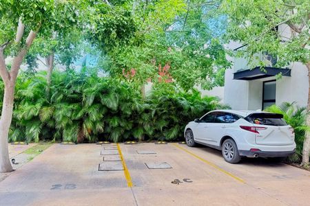 Departamento ubicado en planta baja, enfrente de los cajones de estacionamiento, la entrada principal te lleva al área de cocina, una cocina abierta con barra de granito, incluye parrilla eléctrica, espacio para comedor y sala con un espacio exterior para una jardinera, dos recamaras con baño completo fuera de la recamara, una de ellas con closet. Cuenta también con clóset con espacio para lavadora y boiler eléctrico.