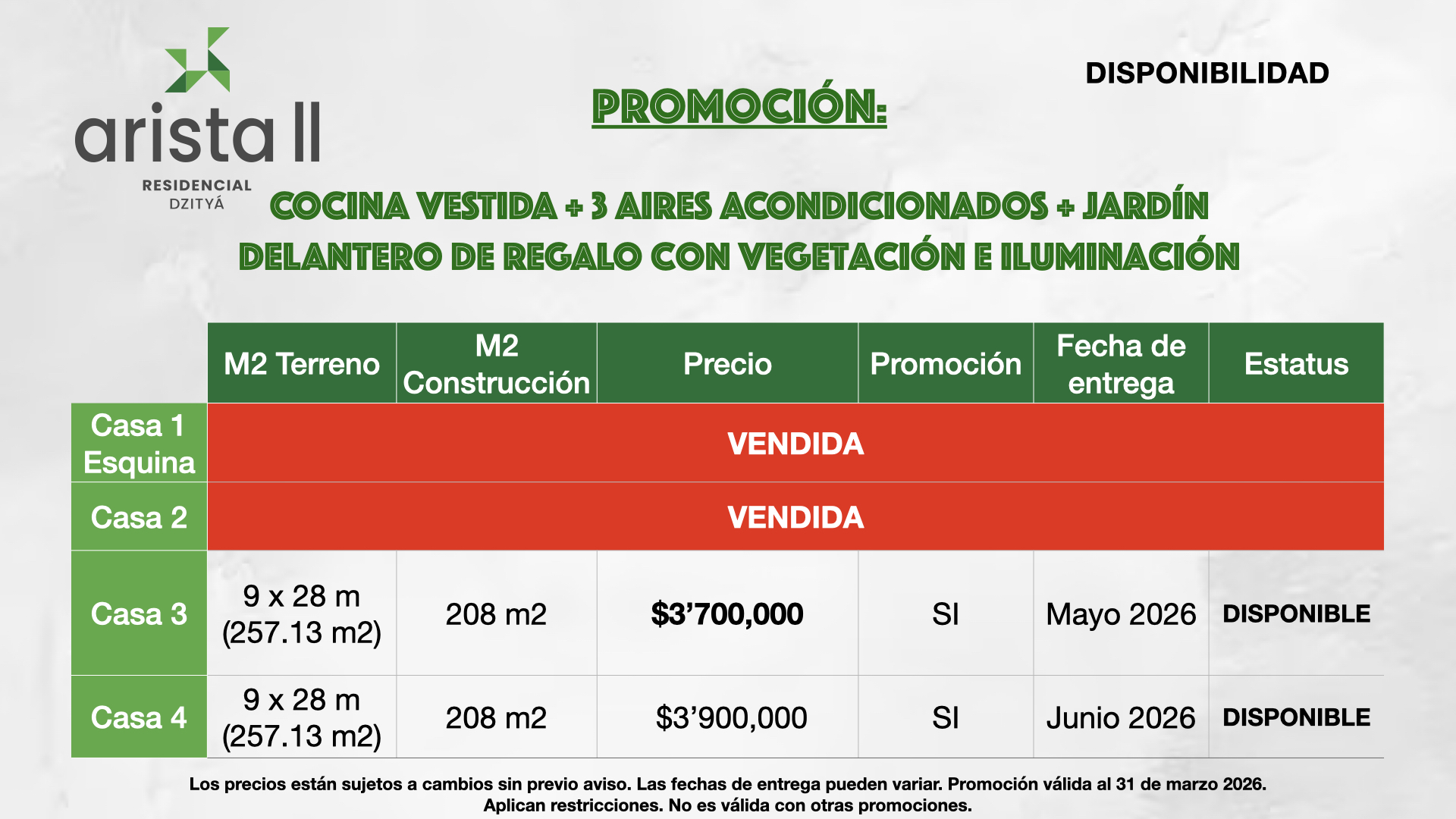 -La información, incluyendo la fecha de entrega y otros detalles adicionales, está sujeta a cambios sin previo aviso.
