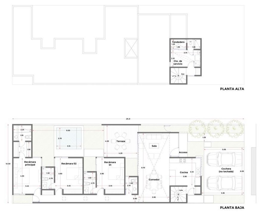 2 recámaras cada una con baño y acceso a jardín