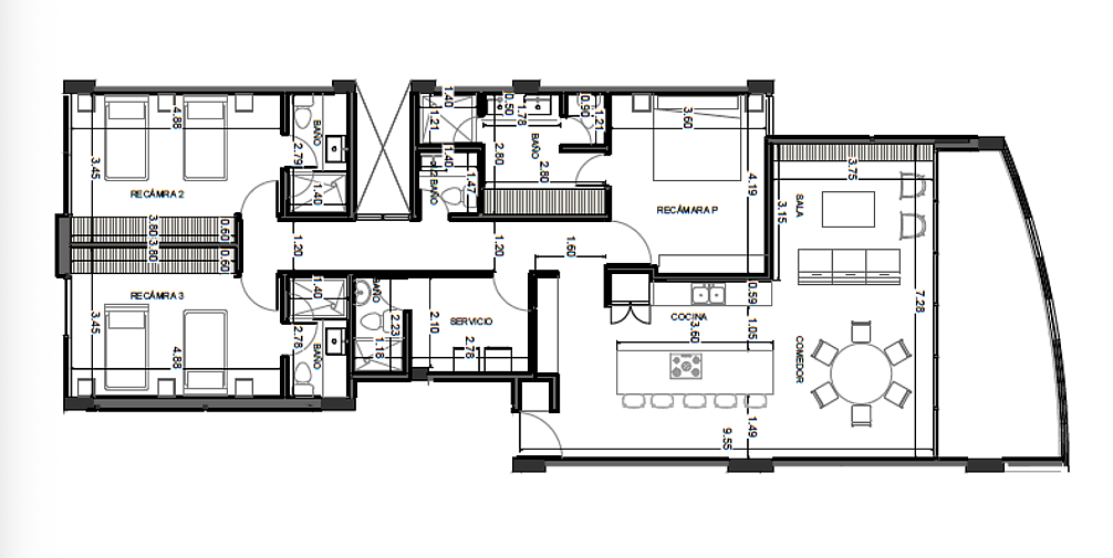 3 Cajones de estacionamiento.