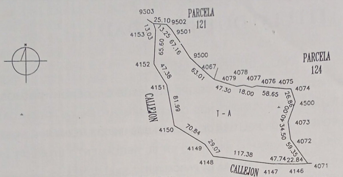 Terreno: 38,472.25m2 De forma irregular y de acceso por calle blanca