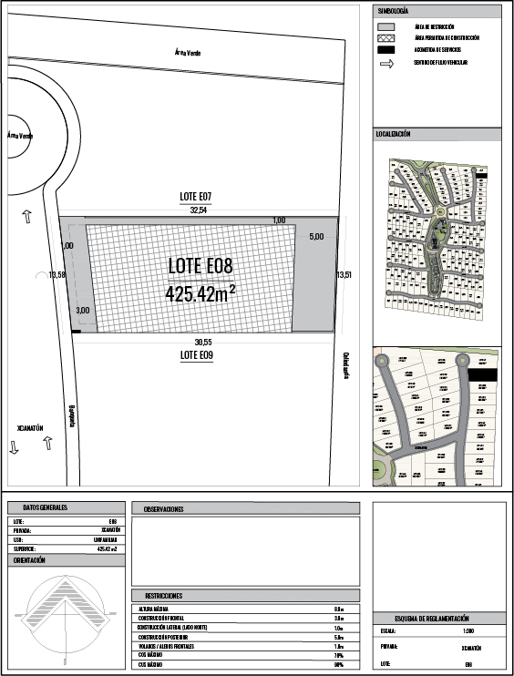 El master plan incluye 186 lotes desde 294.33m2 hasta 893.66m2