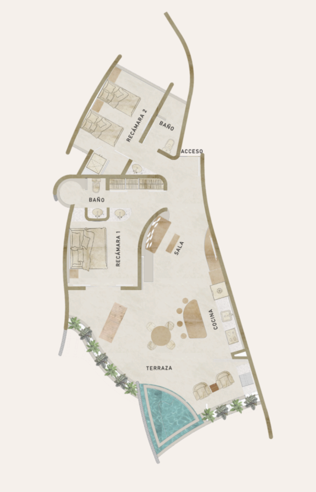 Los departamentos cuentan con amenidades como acceso directo a playa y alberca con vista al mar.