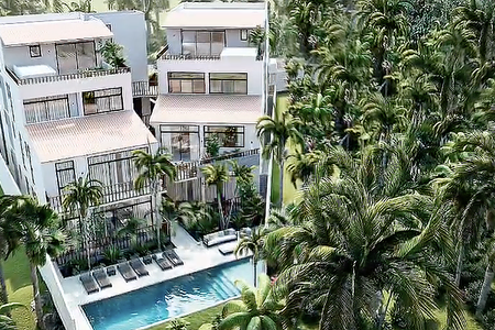 This bright and spacious unit features an open-concept living and dining area, a fully equipped kitchen, two comfortable bedrooms, and 2 full bathrooms. The private terrace offers a peaceful setting surrounded by lush tropical landscaping.