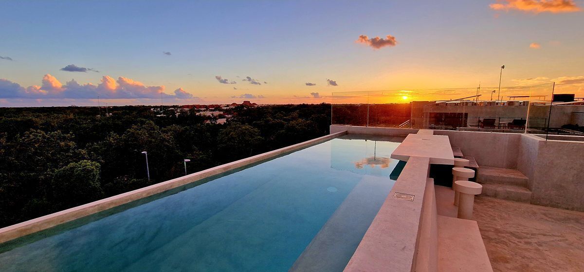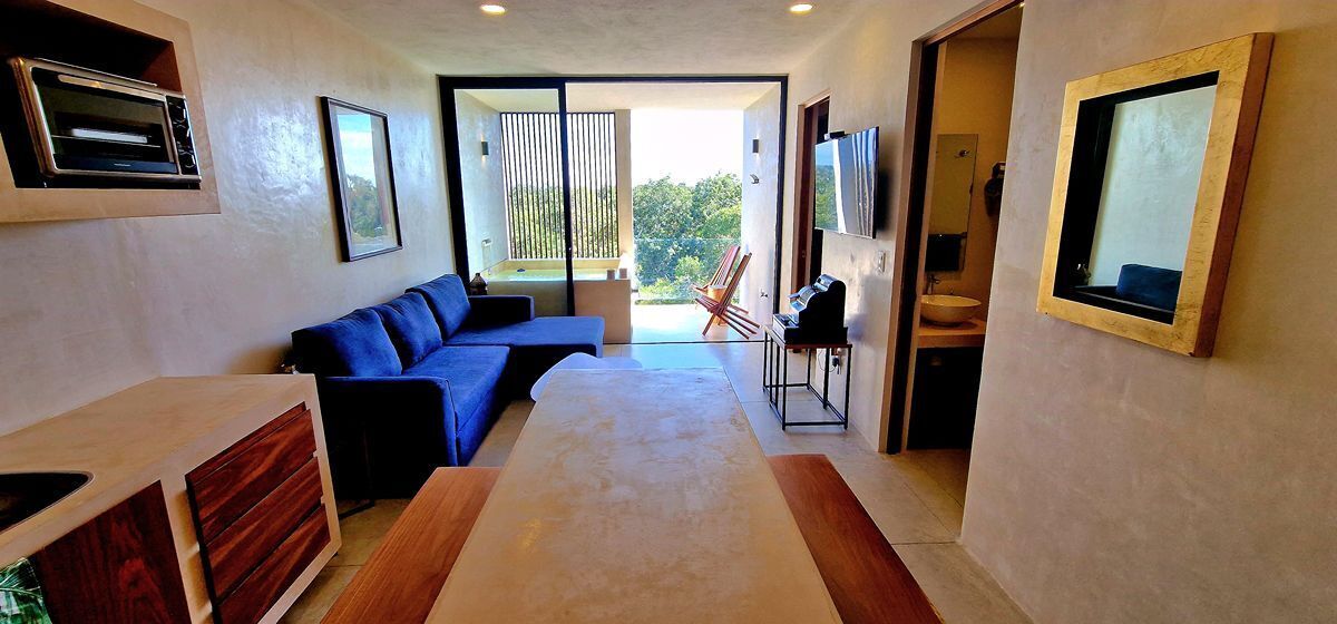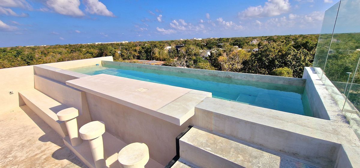 Departamento en Aldea Zama 2 recamaras 1 baño Totalmente Amueblado Jacuzzi privada Alberca en el roof top Vista espectacular Servicios aparte Mínimo 6 meses 2 meses de deposito