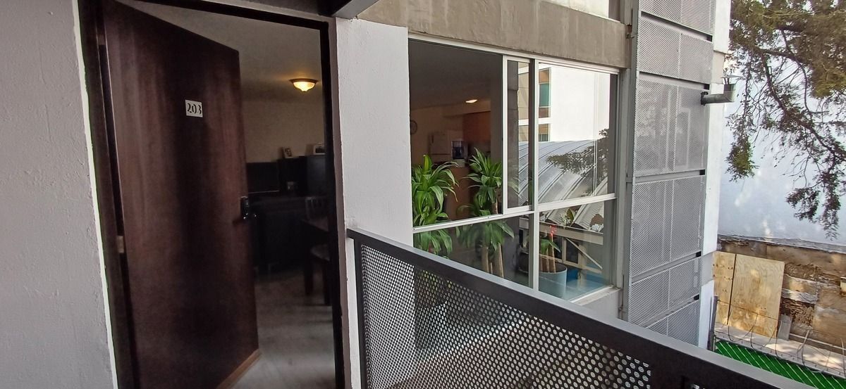 La sala y el comedor tiene vista al interior, cuenta con cocina abierta, área de lavado, dos recamaras con balcón. La recamara principal con baño y otro baño con lavabo afuera.