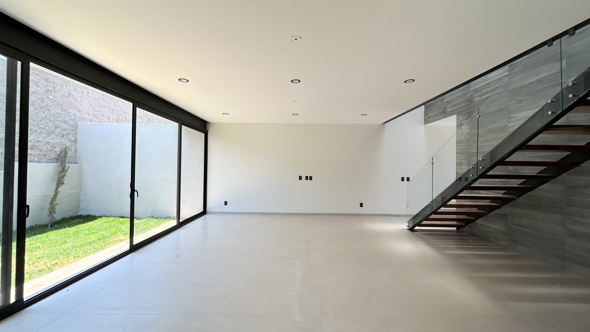 - Vestíbulo y sala - comedor - Moderna y amplia cocina con isla y alacena - Jardín posterior de 50 m2 - Cuarta recámara con baño en planta baja - Baño de visitas - Área de lavado - Bodega - 3 estacionamientos