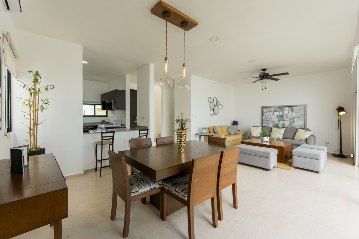 • Sala y comedor corridos. • Cocina con mesetas de granito y gabinetes