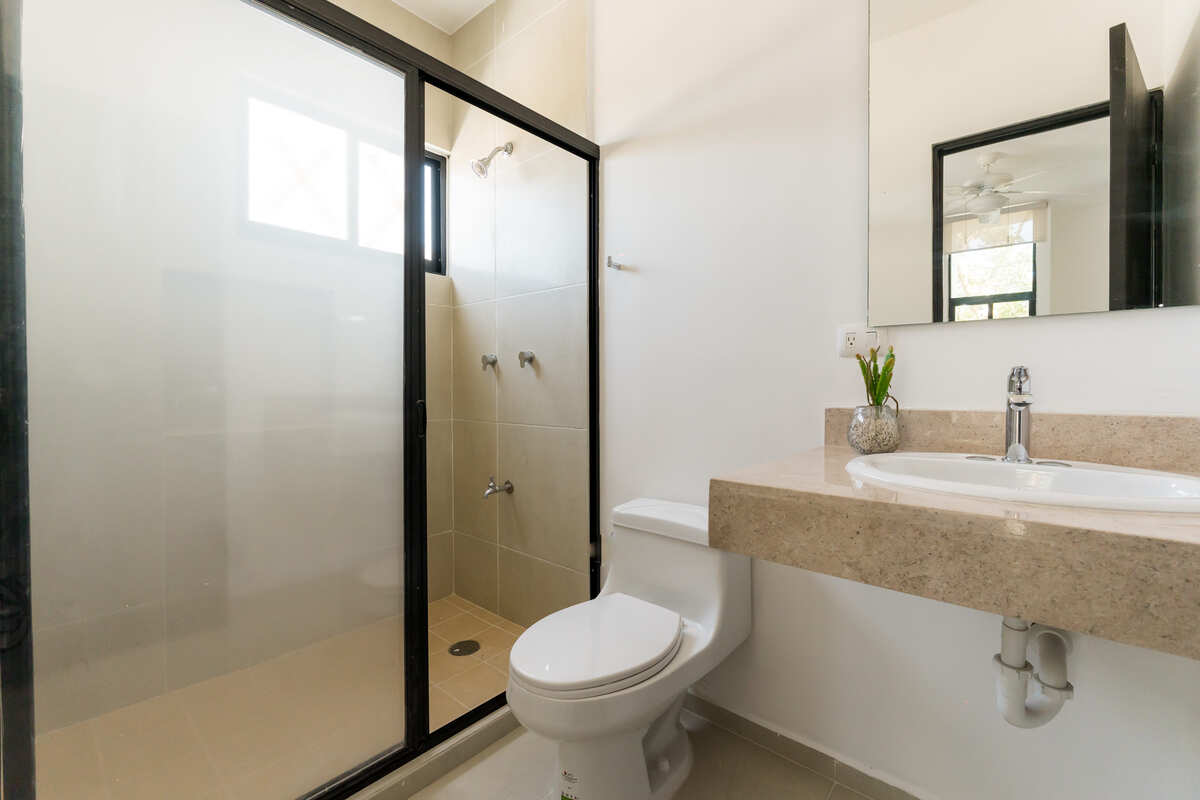• 3 baños completos con mesetas en mármol en área de lavabo y canceles.