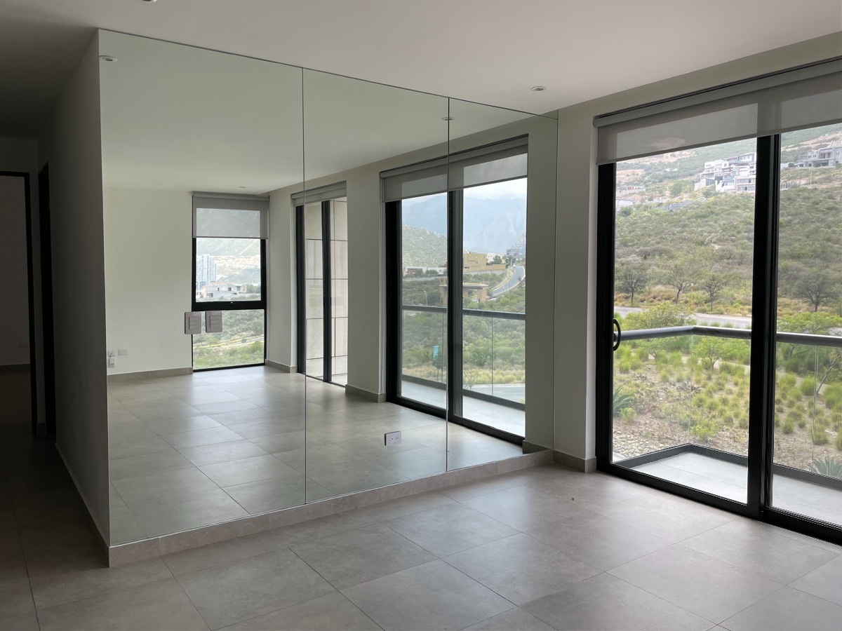 Ambar 1. Departamento con hermosas vistas a la Sierra Madre y a la Huasteca. Cocina equipada, centro de lavado, ministplits inverter, persianas. Dos recámaras, dos baños completos, sala, comedor. Dos cajones de estacionamiento. Edificio cerca de la UDEM, en valle poniente, via cordillera, donde se encuentran restaurantes, cafés, cines, supermercados. Seguridad 24/7 El edificio cuenta con terraza con asadores y salas de reunión.