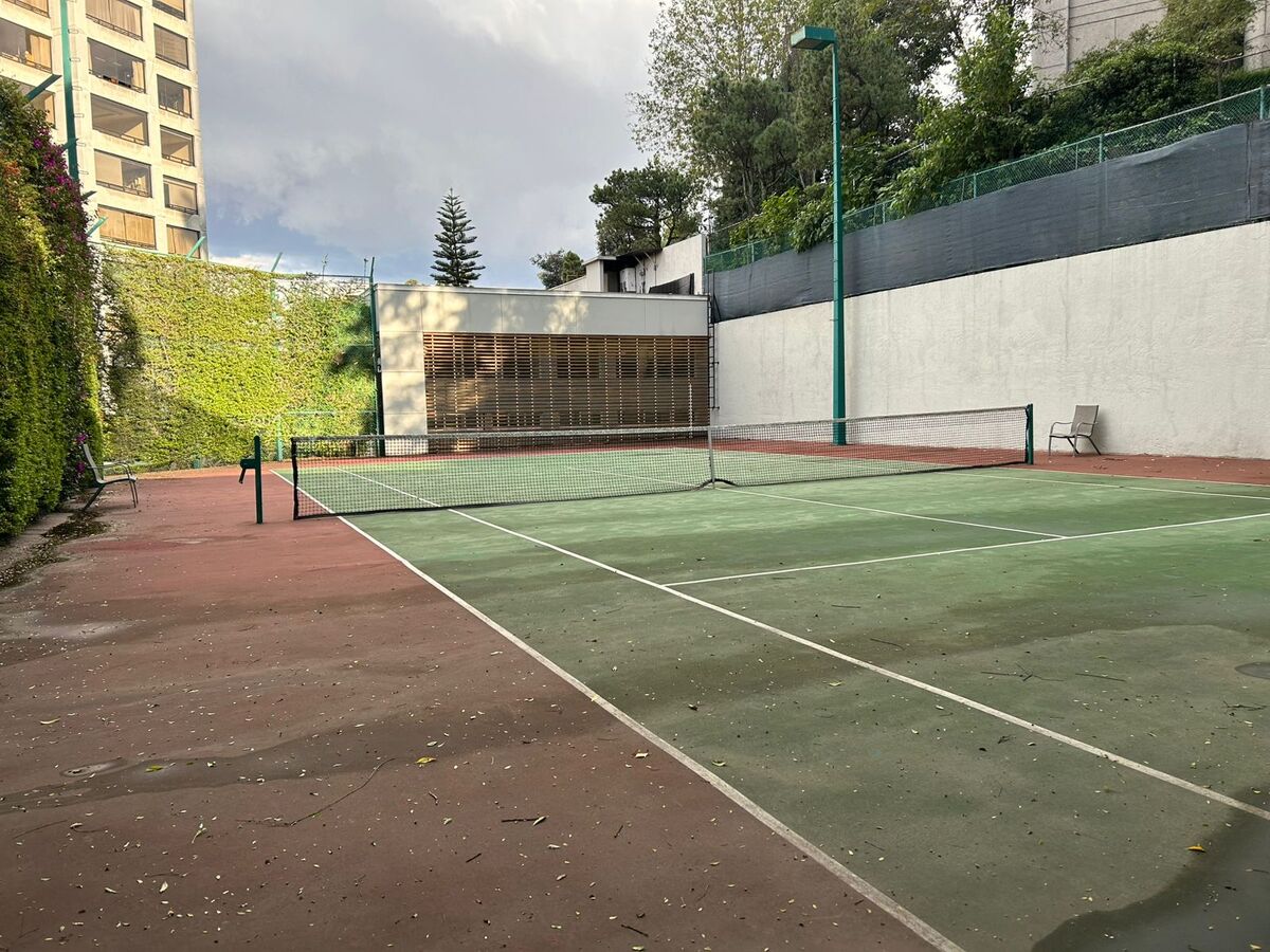 Áreas comunes: alberca, jardín, cancha de tenis, cancha de basketball, salón de eventos