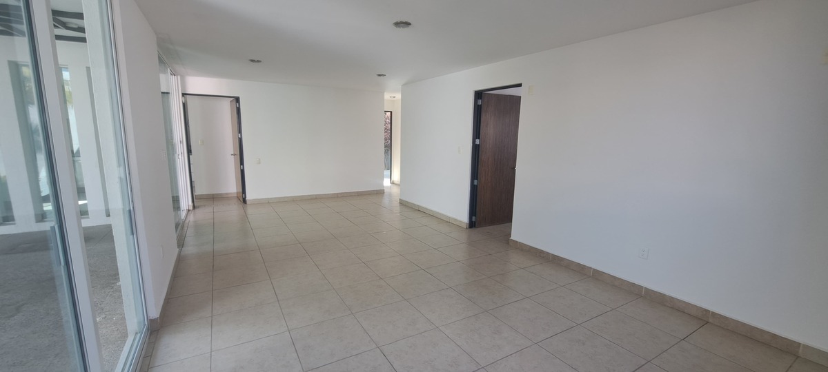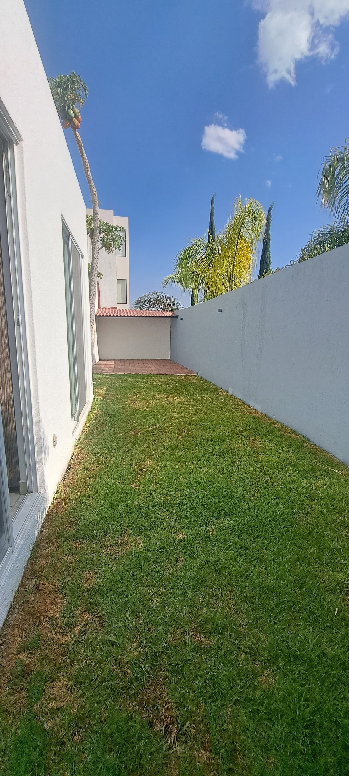 Amplia casa de un solo nivel en residencial El Refugio Querétaro a pie de calle. Ideal para familias o adultos mayores. 327m2 de Terreno. 189m2 de Construcción. 3 habitaciones. Recámara principal con baño y vestidor. 2 recámaras secundarias con acceso directo al jardín trasero. 1 de ellas con baño propio. 1 baño adicional completo que da servicio a la 3a recámara y a la Sala - comedor. Cocina integral. Area de lavado con closet de blancos. 1 cuarto de servicio/oficina c baño completo. 2 jardines interiores con árboles frutales y áreas techadas. 3 lugares de estacionamiento. Cisterna de 5000 litros. 2 tinacos de 2500 litros. Cerca de centros comerciales. Filtro de seguridad.