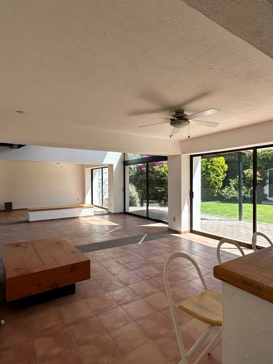 Al entrar cuenta con vestíbulo de doble altura con cúpula catalana, recámara con baño completo y pequeño vestidor, sala de tv, sala, comedor, bar, cocina integral equipada con espacio para lavavajillas, alacena, área de lavado, cuarto de servicio con baño, terraza y jardín de 80m2 con arboles frutales de lima y limón.
