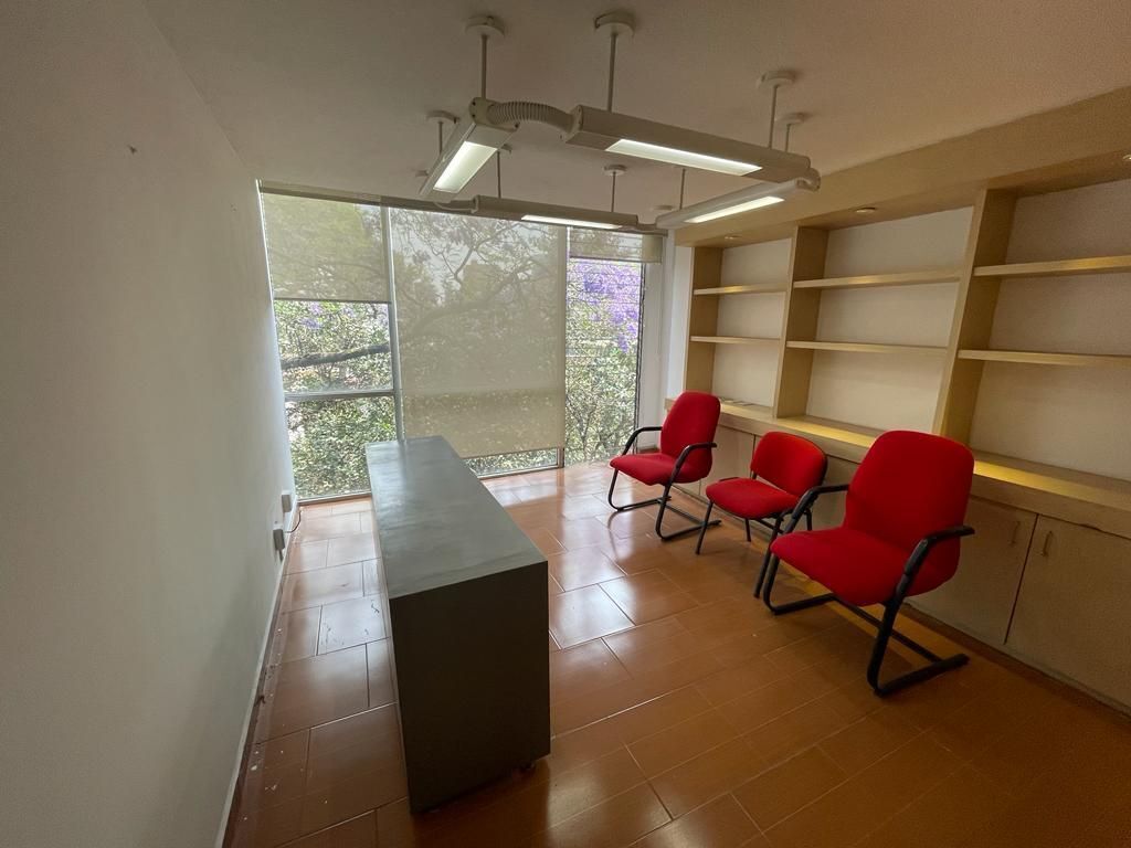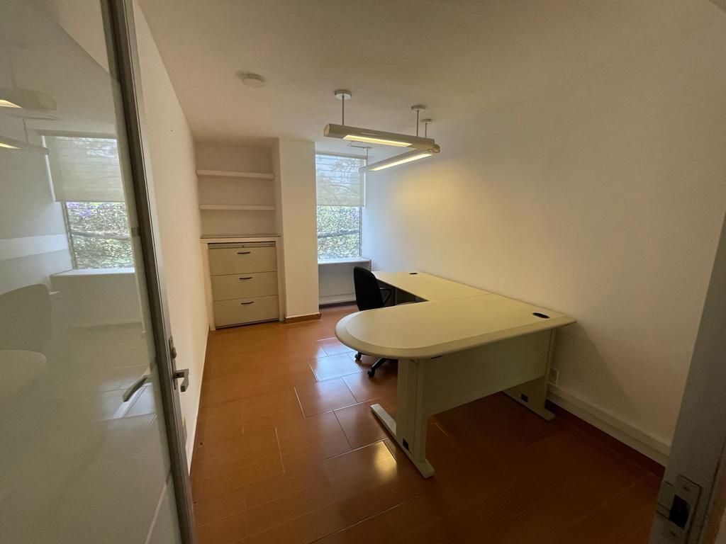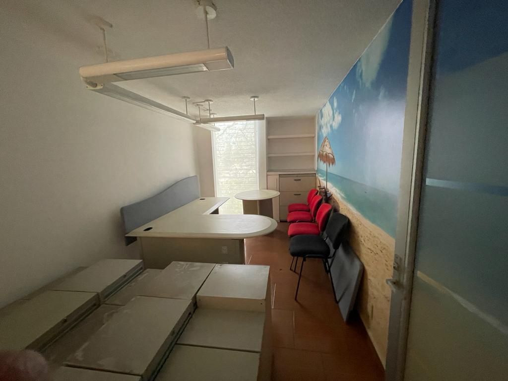 La oficina cuenta con 4 cubículos y una sala de juntas grande, un closet para archivero, 2 baños y una cocina integral, área de recepción, algo de mobiliario que se puede quedar o se quita. 2 cajones de estacionamiento