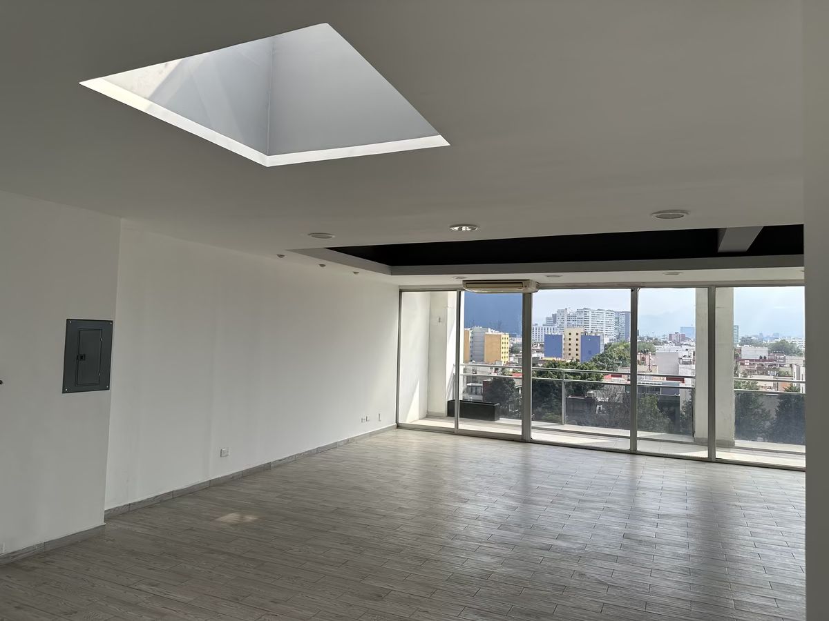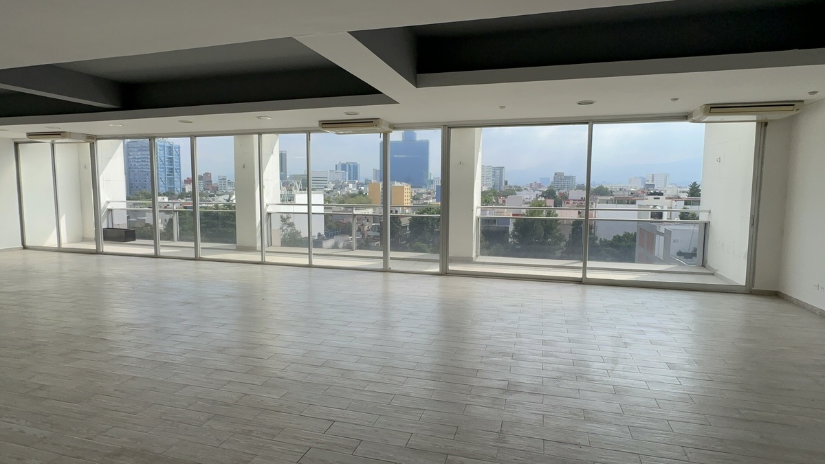 Aprovecha la excelente ubicación de esta amplia oficina en la colonia Hipódromo, dentro de un edificio con seguridad privada. Situada en el 7º piso, ofrece excelente iluminación natural gracias a sus domos, vistas espectaculares y una espaciosa terraza ideal para trabajar o recibir visitas en un ambiente funcional y cómodo.