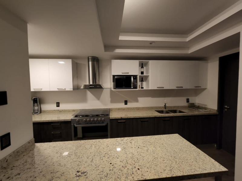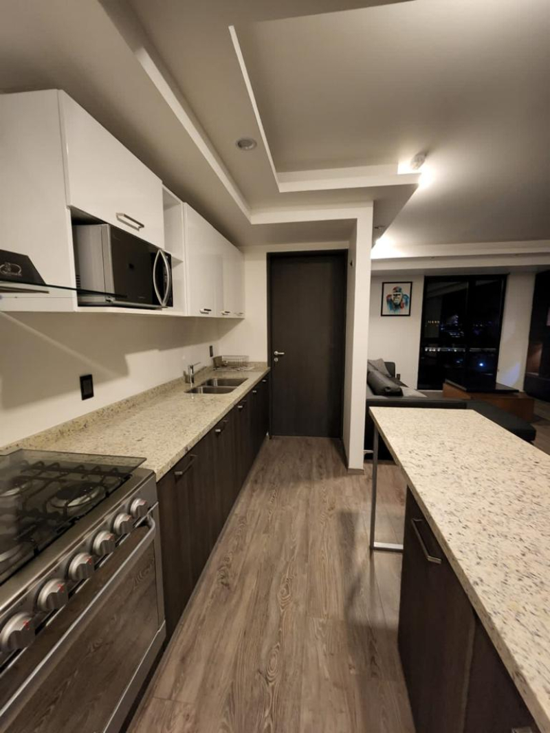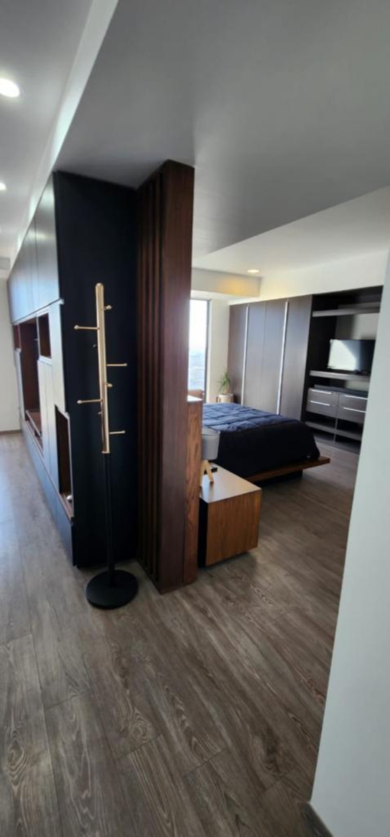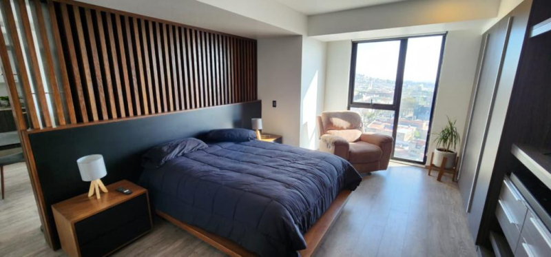 Hermoso departamento totalmente amueblado, la recámara separada del área social. Un baño, estacionamiento, vigilancia 24 hr. Agradables vistas hacia el centro de Toluca. Edificio nuevo