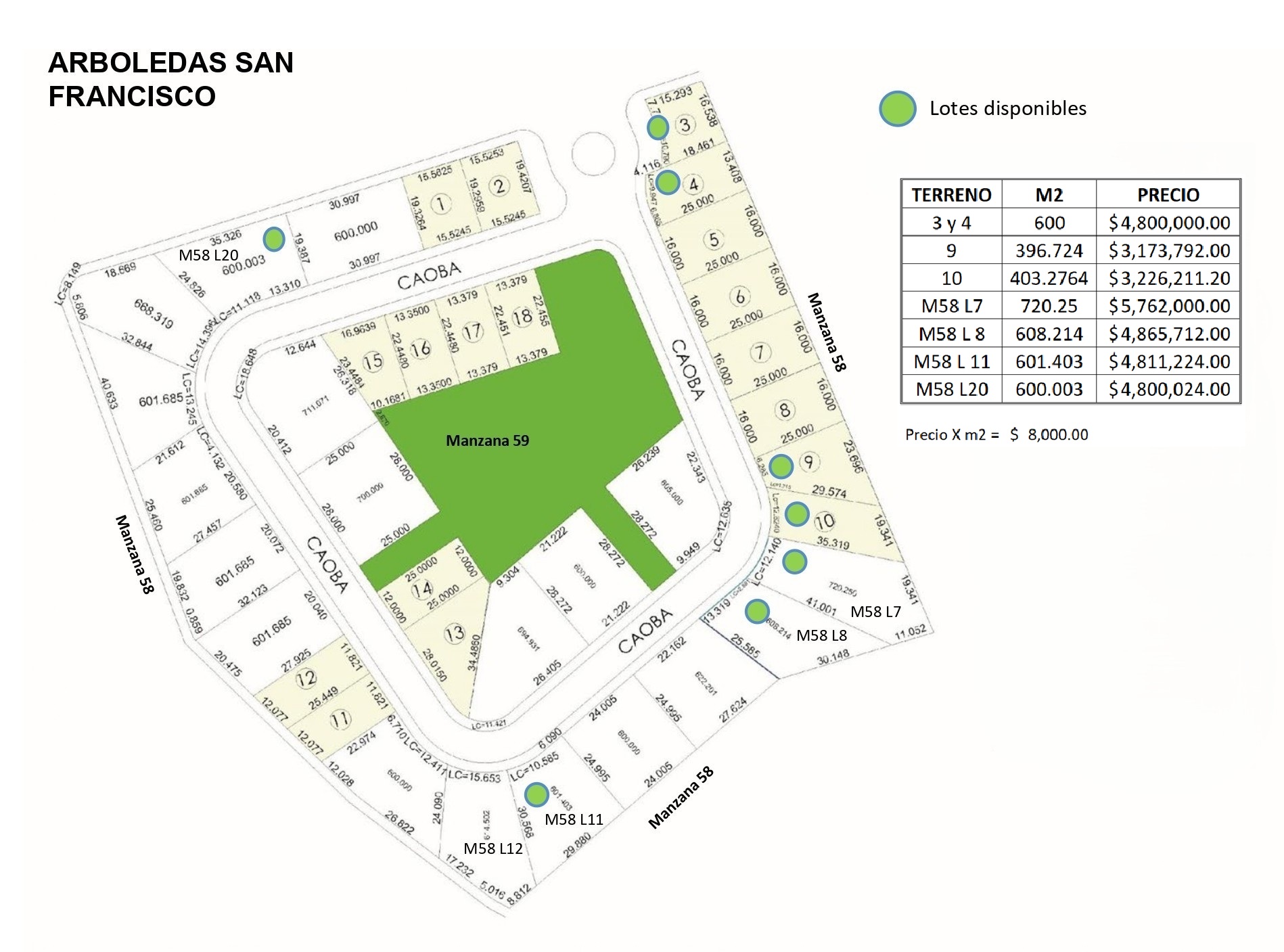 Terrenos planos y semiplanos, áreas verdes, palapa con alberca y asador, juegos infantiles.