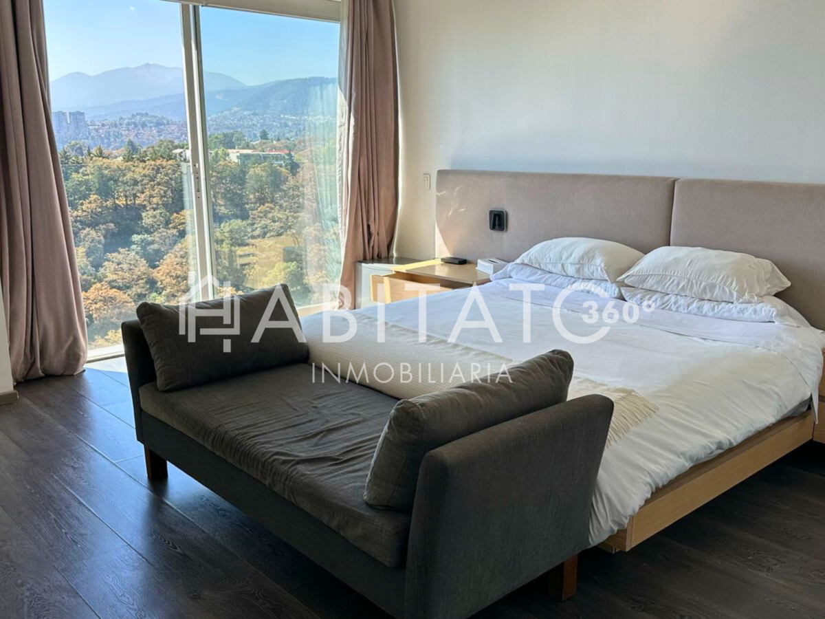 Ubicado en Basalto, Cumbres de Santa Fe, este departamento de 270 m² ofrece una experiencia residencial de alto nivel, donde el diseño, la amplitud y la naturaleza se entrelazan con sofisticación. Las vistas verdes que rodean el espacio aportan una atmósfera de serenidad, visible desde una terraza íntima conectada al área social. El concepto abierto integra sala, comedor y cocina en una composición armónica, ideal para recibir con estilo o disfrutar en familia. Cada una de las tres recámaras cuenta con baño privado y vestidor, realzados por acabados de lujo que elevan el confort y la estética. La privacidad, la seguridad y las amenidades del desarrollo complementan una propuesta de vida exclusiva, pensada para quienes valoran el equilibrio entre elegancia y bienestar.