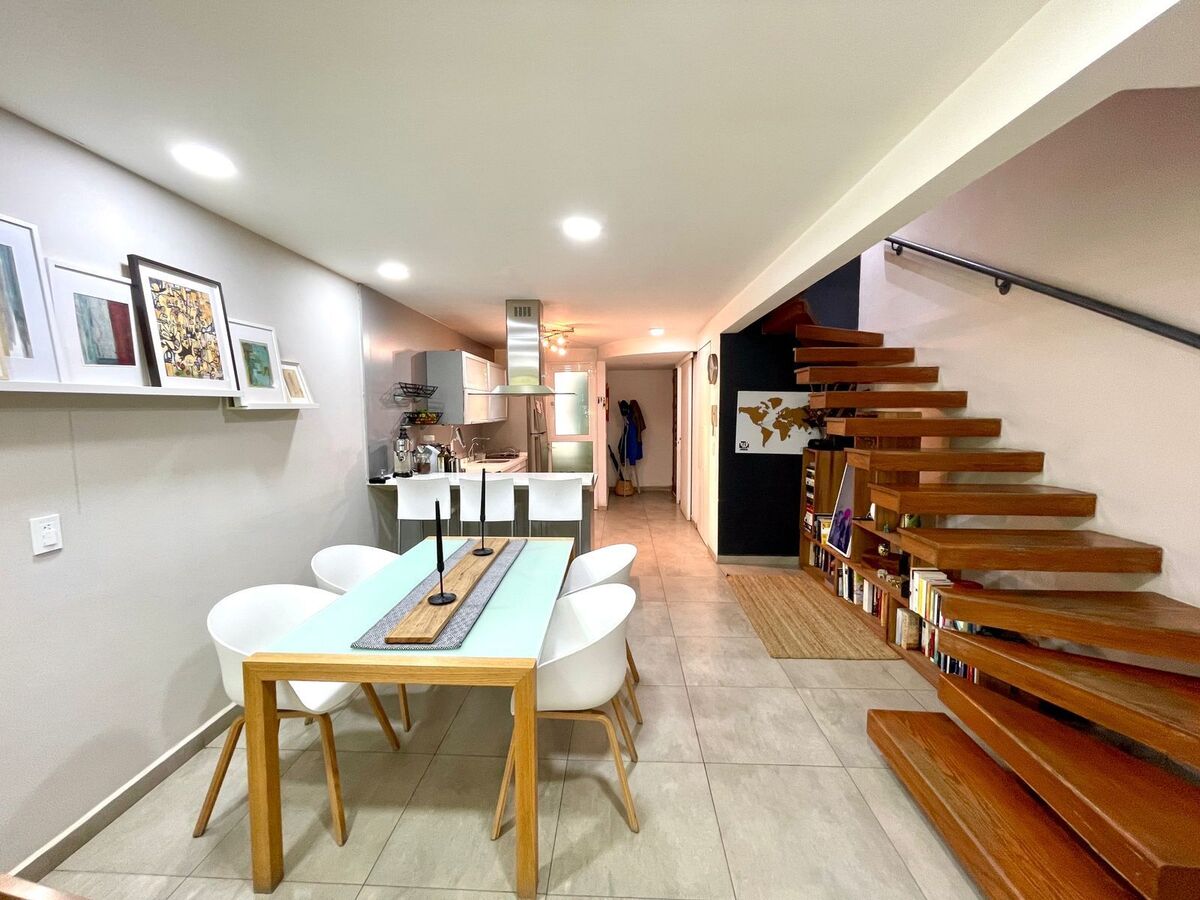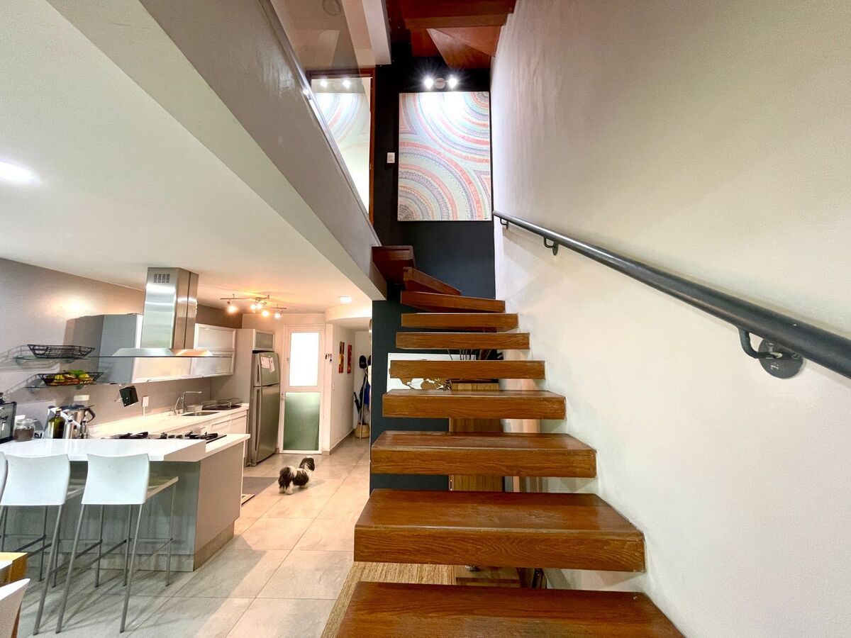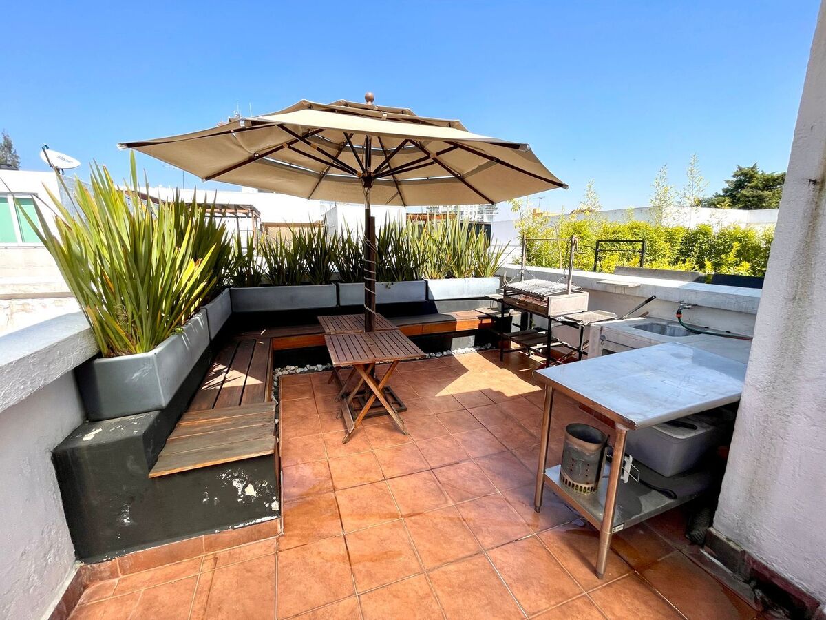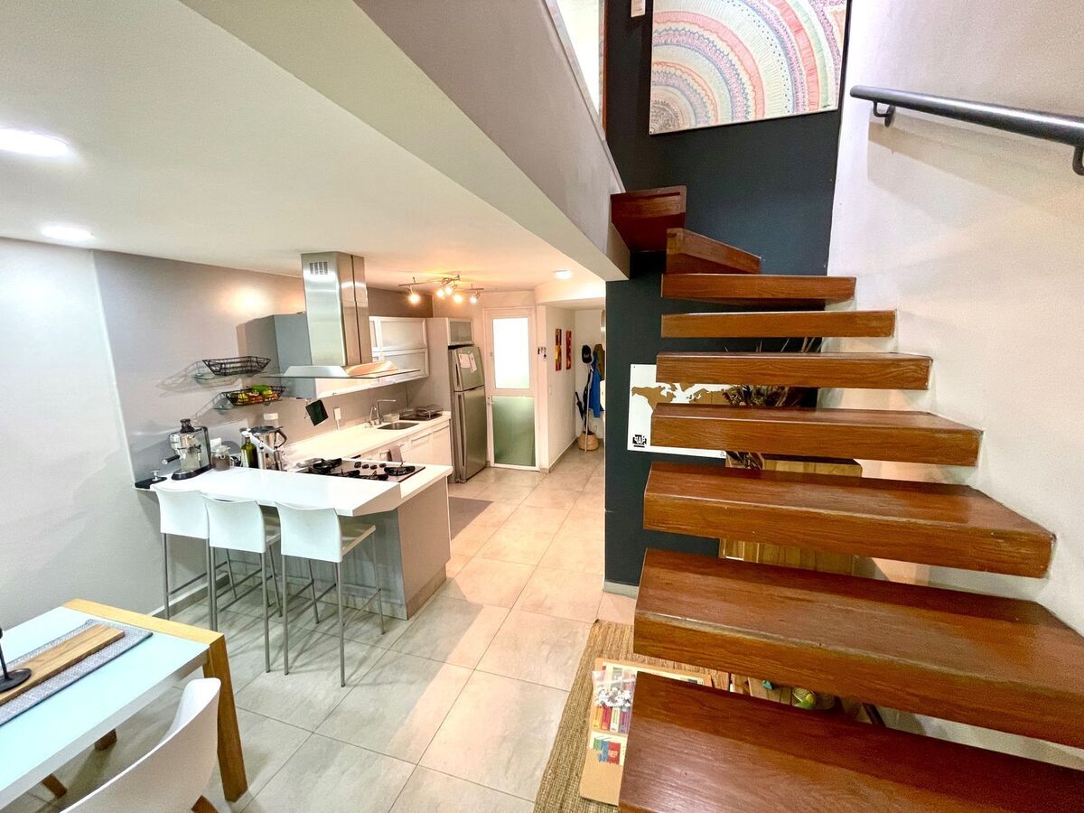 En esta zona tenemos y ponemos a sus ordenes un departamento de 134 m2 totales, 94 m2 habitables en dos niveles y un tercer nivel con 40 m2 de Roof Garden propio, este desarrollo tiene antigüedad de 17 años, tiene 24 departamentos dentro del conjunto con seguridad privada y área de estacionamiento cubierto, que se ubica en los sótano, instalación de gas natural.