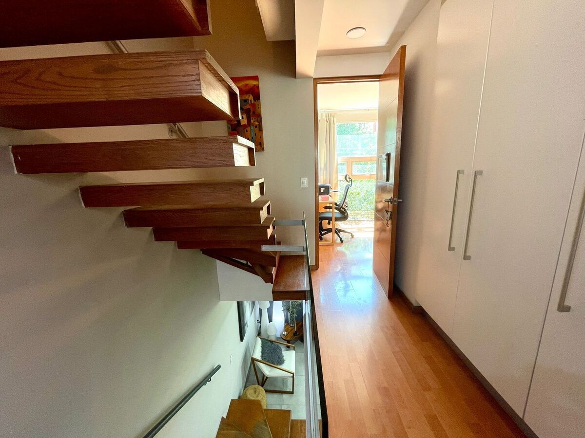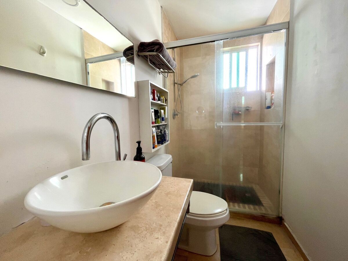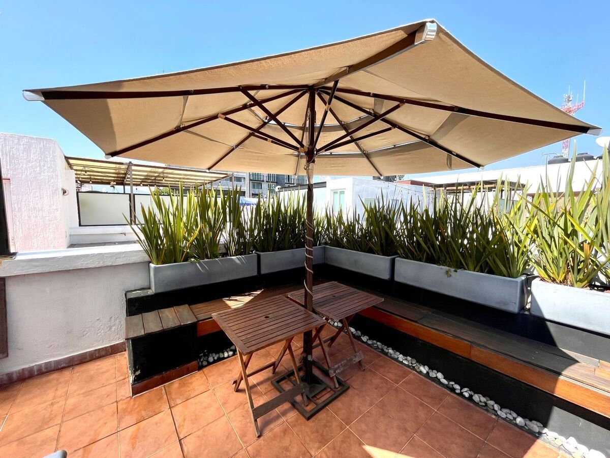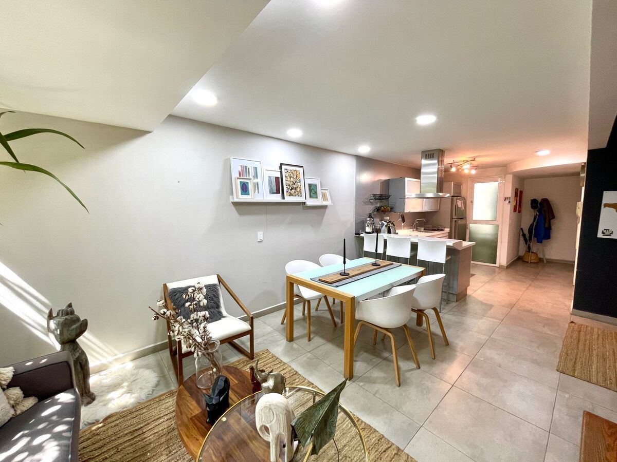 En esta zona tenemos y ponemos a sus ordenes un departamento de 134 m2 totales, 94 m2 habitables en dos niveles y un tercer nivel con 40 m2 de Roof Garden propio, este desarrollo tiene antigüedad de 17 años, tiene 24 departamentos dentro del conjunto con seguridad privada y área de estacionamiento cubierto, que se ubica en los sótano, instalación de gas natural.